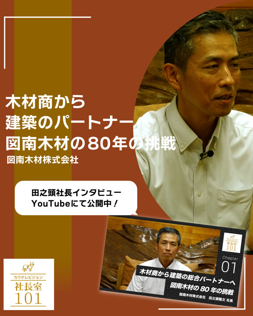 インターネットTV番組「社長室101」にて代表取締役 田之頭隆文のインタビューが公開されました この度、株式会社カウテレビジョン様が配信するインターネットTV番組「社長室101」にて、代表取締役 田之頭隆文のインタビュー動画が公開されました。 動画では、事業に込めた想いや創業の背景、新規事業への取り組みや今後の展望についてお話しています。 バナーをタップ、またはクリックしますと動画を閲覧いただけますので、ぜひご視聴ください。 2025年12月2日